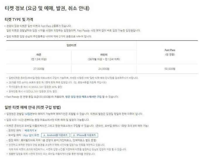 제2롯데월드 전망대 가격 할인 안내